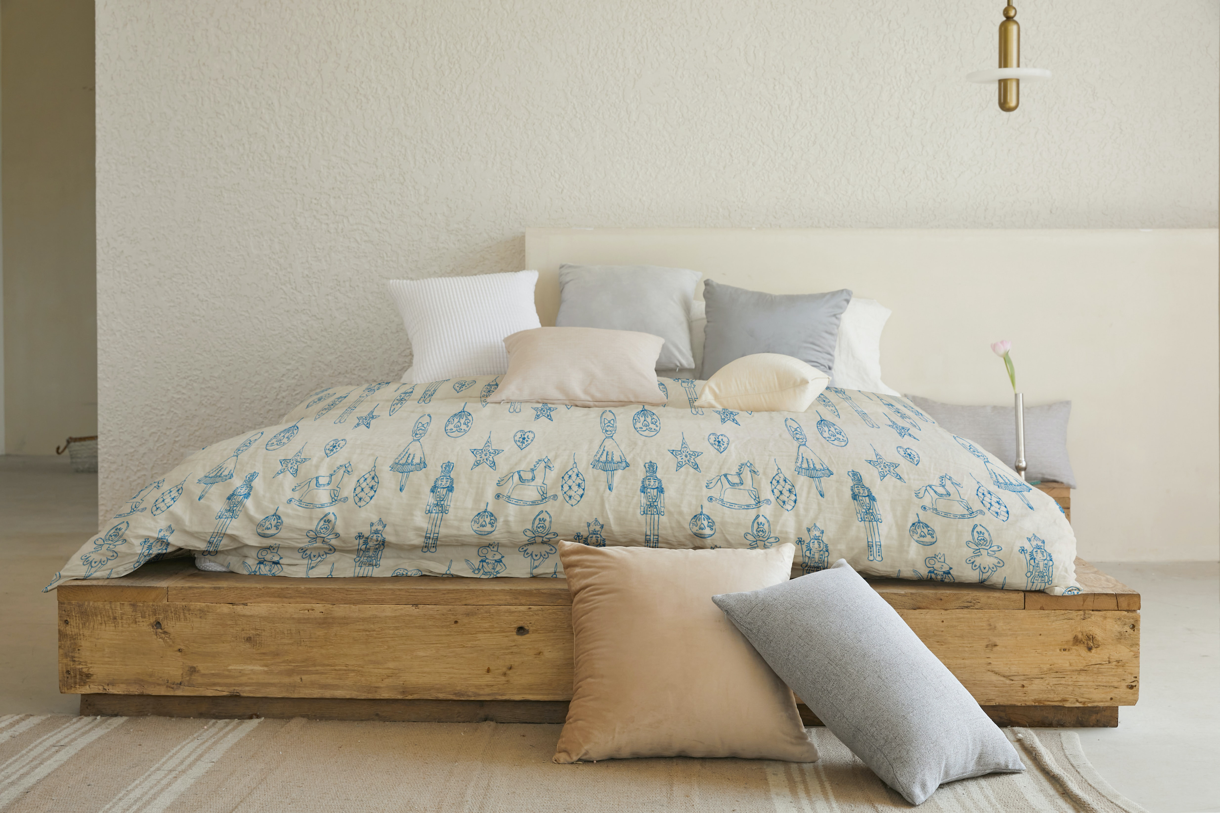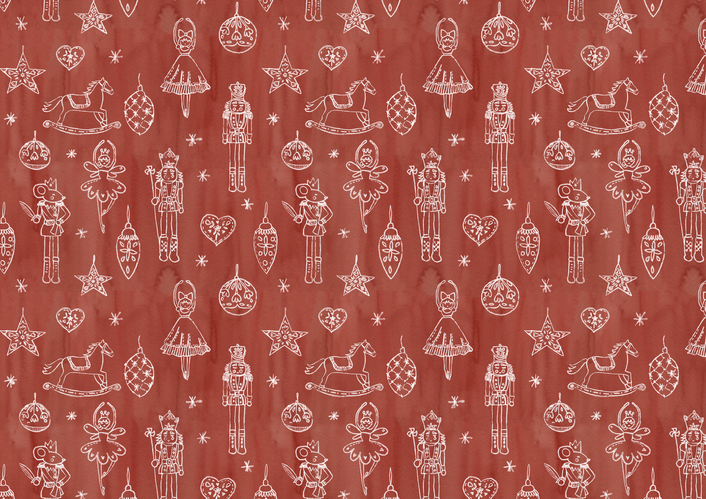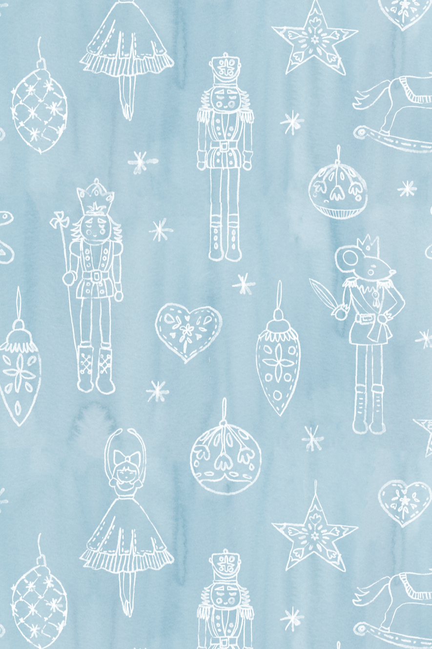 Mientras afuera cae la nieve, una niña observa su cascanueces de madera.